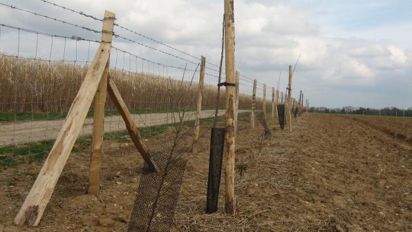 Cornouiller, bourdaine, sureau, boulot, noisetier, acacia, noyer, charme, argousier, houx, sorbier et autres tilleul… Des fleurs pour nos (futures) abeilles, et des épines : le gros gibier est abondant dans la région, il est important de s’en prémunir. C’est pourquoi nous avons également doublé cette haie d’une clôture grillagée.